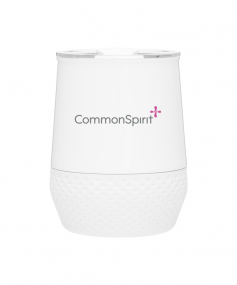 12 oz double wall 18/8 stainless steel thermal tumbler with copper vacuum insulation, push-on lid, matching swivel closure, and removable silicone base.