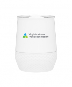 12 oz double wall 18/8 stainless steel thermal tumbler with copper vacuum insulation, push-on lid, matching swivel closure, and removable silicone base.