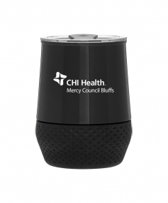 12 oz double wall 18/8 stainless steel thermal tumbler with copper vacuum insulation, push-on lid, matching swivel closure, and removable silicone base.