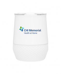 12 oz double wall 18/8 stainless steel thermal tumbler with copper vacuum insulation, push-on lid, matching swivel closure, and removable silicone base.