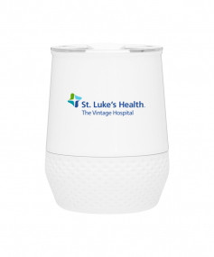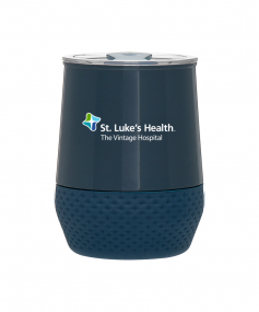 12 oz double wall 18/8 stainless steel thermal tumbler with copper vacuum insulation, push-on lid, matching swivel closure, and removable silicone base.