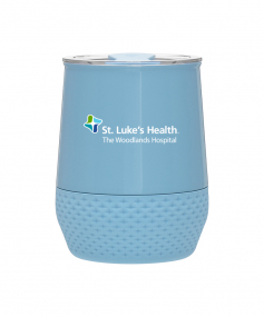 12 oz double wall 18/8 stainless steel thermal tumbler with copper vacuum insulation, push-on lid, matching swivel closure, and removable silicone base.