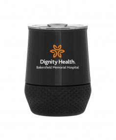12 oz double wall 18/8 stainless steel thermal tumbler with copper vacuum insulation, push-on lid, matching swivel closure, and removable silicone base.