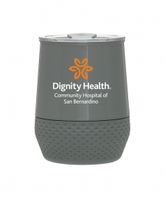 12 oz double wall 18/8 stainless steel thermal tumbler with copper vacuum insulation, push-on lid, matching swivel closure, and removable silicone base.