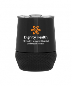 12 oz double wall 18/8 stainless steel thermal tumbler with copper vacuum insulation, push-on lid, matching swivel closure, and removable silicone base.
