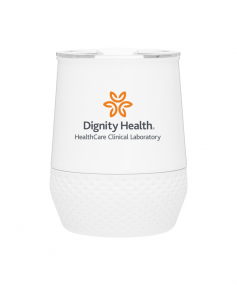 12 oz double wall 18/8 stainless steel thermal tumbler with copper vacuum insulation, push-on lid, matching swivel closure, and removable silicone base.