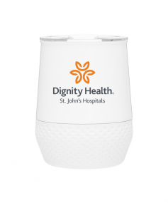 12 oz double wall 18/8 stainless steel thermal tumbler with copper vacuum insulation, push-on lid, matching swivel closure, and removable silicone base.