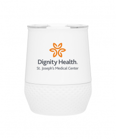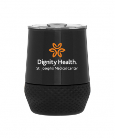 12 oz double wall 18/8 stainless steel thermal tumbler with copper vacuum insulation, push-on lid, matching swivel closure, and removable silicone base.