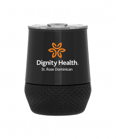 12 oz double wall 18/8 stainless steel thermal tumbler with copper vacuum insulation, push-on lid, matching swivel closure, and removable silicone base.