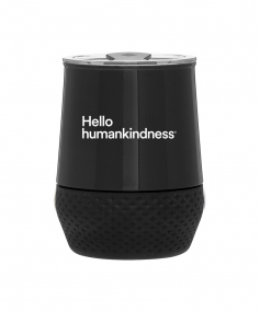 12 oz double wall 18/8 stainless steel thermal tumbler with copper vacuum insulation, push-on lid, matching swivel closure, and removable silicone base.