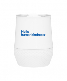 12 oz double wall 18/8 stainless steel thermal tumbler with copper vacuum insulation, push-on lid, matching swivel closure, and removable silicone base.