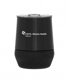 12 oz double wall 18/8 stainless steel thermal tumbler with copper vacuum insulation, push-on lid, matching swivel closure, and removable silicone base.
