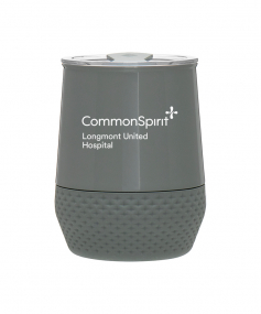 12 oz double wall 18/8 stainless steel thermal tumbler with copper vacuum insulation, push-on lid, matching swivel closure, and removable silicone base.
