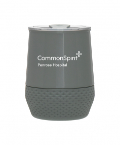 12 oz double wall 18/8 stainless steel thermal tumbler with copper vacuum insulation, push-on lid, matching swivel closure, and removable silicone base.