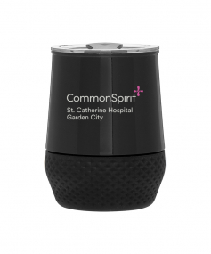 12 oz double wall 18/8 stainless steel thermal tumbler with copper vacuum insulation, push-on lid, matching swivel closure, and removable silicone base.