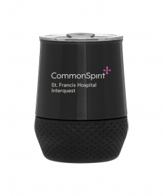 12 oz double wall 18/8 stainless steel thermal tumbler with copper vacuum insulation, push-on lid, matching swivel closure, and removable silicone base.
