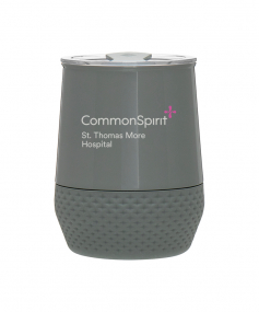 12 oz double wall 18/8 stainless steel thermal tumbler with copper vacuum insulation, push-on lid, matching swivel closure, and removable silicone base.