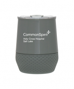 12 oz double wall 18/8 stainless steel thermal tumbler with copper vacuum insulation, push-on lid, matching swivel closure, and removable silicone base.