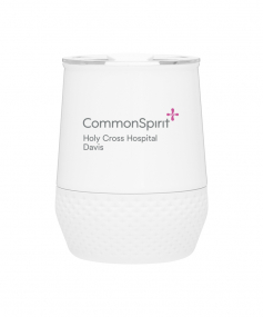 12 oz double wall 18/8 stainless steel thermal tumbler with copper vacuum insulation, push-on lid, matching swivel closure, and removable silicone base.