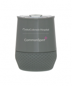 12 oz double wall 18/8 stainless steel thermal tumbler with copper vacuum insulation, push-on lid, matching swivel closure, and removable silicone base.