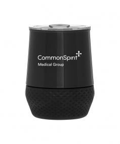 12 oz double wall 18/8 stainless steel thermal tumbler with copper vacuum insulation, push-on lid, matching swivel closure, and removable silicone base.