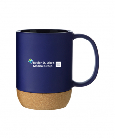 13 oz stoneware: matte color out / gloss color in with cork baseHand wash recommended. Do not microwave. Complies with FDA, Prop 65. 4.625" H x 5" W