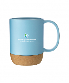 13 oz stoneware: matte color out / gloss color in with cork baseHand wash recommended. Do not microwave. Complies with FDA, Prop 65. 4.625" H x 5" W