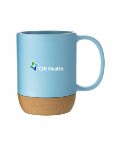 13 oz stoneware: matte color out / gloss color in with cork baseHand wash recommended. Do not microwave. Complies with FDA, Prop 65. 4.625" H x 5" W
