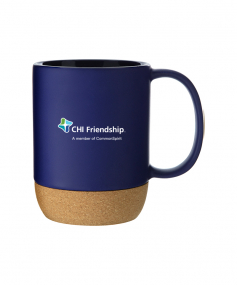13 oz stoneware: matte color out / gloss color in with cork baseHand wash recommended. Do not microwave. Complies with FDA, Prop 65. 4.625" H x 5" W