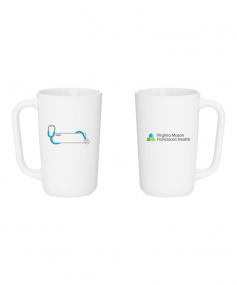 14 oz stoneware: matte color out / glossy color in. Hand wash recommended. Microwave safe with non-metallic print. Complies with FDA, Prop 65. 5.25" H x 4.75" W