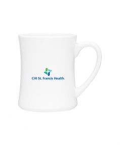 15 oz stoneware: matte color out / glossy color in. Hand wash recommended. Microwave safe with non-metallic imprint. Complies with FDA, Prop 65. 4.625" H x 5.125" W