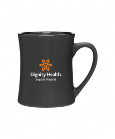 15 oz stoneware: matte color out / glossy color in. Hand wash recommended. Microwave safe with non-metallic imprint. Complies with FDA, Prop 65. 4.625" H x 5.125" W