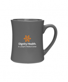 15 oz stoneware: matte color out / glossy color in. Hand wash recommended. Microwave safe with non-metallic imprint. Complies with FDA, Prop 65. 4.625" H x 5.125" W