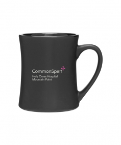 15 oz stoneware: matte color out / glossy color in. Hand wash recommended. Microwave safe with non-metallic imprint. Complies with FDA, Prop 65. 4.625" H x 5.125" W