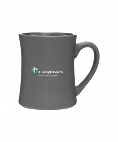 15 oz stoneware: matte color out / glossy color in. Hand wash recommended. Microwave safe with non-metallic imprint. Complies with FDA, Prop 65. 4.625" H x 5.125" W