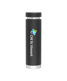 16.9 oz. double wall 18/8 stainless steel thermal bottle with copper vacuum insulation, threaded insulated stainless steel lid, high polish rim and base, and powder coated finish. Hand wash recommended; Do not microwave. Dimensions: 9 3/8 H x 2 5/8".