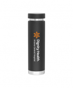 16.9 oz. double wall 18/8 stainless steel thermal bottle with copper vacuum insulation, threaded insulated stainless steel lid, high polish rim and base, and powder coated finish. Hand wash recommended; Do not microwave. Dimensions: 9 3/8 H x 2 5/8".
