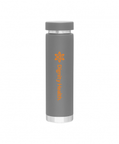 16.9 oz. double wall 18/8 stainless steel thermal bottle with copper vacuum insulation, threaded insulated stainless steel lid, high polish rim and base, and powder coated finish. Hand wash recommended; Do not microwave. Dimensions: 9 3/8 H x 2 5/8".