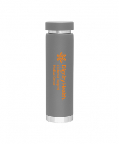 16.9 oz. double wall 18/8 stainless steel thermal bottle with copper vacuum insulation, threaded insulated stainless steel lid, high polish rim and base, and powder coated finish. Hand wash recommended; Do not microwave. Dimensions: 9 3/8 H x 2 5/8".