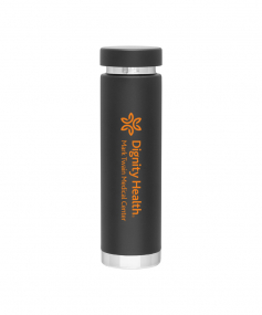16.9 oz. double wall 18/8 stainless steel thermal bottle with copper vacuum insulation, threaded insulated stainless steel lid, high polish rim and base, and powder coated finish. Hand wash recommended; Do not microwave. Dimensions: 9 3/8 H x 2 5/8".
