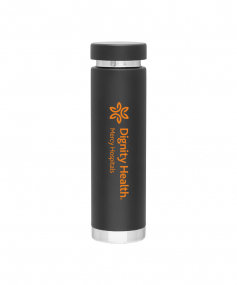 16.9 oz. double wall 18/8 stainless steel thermal bottle with copper vacuum insulation, threaded insulated stainless steel lid, high polish rim and base, and powder coated finish. Hand wash recommended; Do not microwave. Dimensions: 9 3/8 H x 2 5/8".