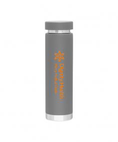 16.9 oz. double wall 18/8 stainless steel thermal bottle with copper vacuum insulation, threaded insulated stainless steel lid, high polish rim and base, and powder coated finish. Hand wash recommended; Do not microwave. Dimensions: 9 3/8 H x 2 5/8".