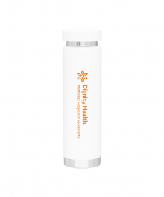 16.9 oz. double wall 18/8 stainless steel thermal bottle with copper vacuum insulation, threaded insulated stainless steel lid, high polish rim and base, and powder coated finish. Hand wash recommended; Do not microwave. Dimensions: 9 3/8 H x 2 5/8".