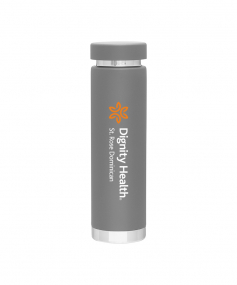 16.9 oz. double wall 18/8 stainless steel thermal bottle with copper vacuum insulation, threaded insulated stainless steel lid, high polish rim and base, and powder coated finish. Hand wash recommended; Do not microwave. Dimensions: 9 3/8 H x 2 5/8".