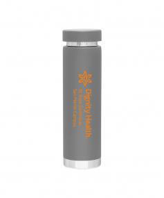 16.9 oz. double wall 18/8 stainless steel thermal bottle with copper vacuum insulation, threaded insulated stainless steel lid, high polish rim and base, and powder coated finish. Hand wash recommended; Do not microwave. Dimensions: 9 3/8 H x 2 5/8".