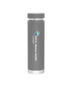 16.9 oz. double wall 18/8 stainless steel thermal bottle with copper vacuum insulation, threaded insulated stainless steel lid, high polish rim and base, and powder coated finish. Hand wash recommended; Do not microwave. Dimensions: 9 3/8 H x 2 5/8".