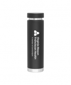 16.9 oz. double wall 18/8 stainless steel thermal bottle with copper vacuum insulation, threaded insulated stainless steel lid, high polish rim and base, and powder coated finish. Hand wash recommended; Do not microwave. Dimensions: 9 3/8 H x 2 5/8".