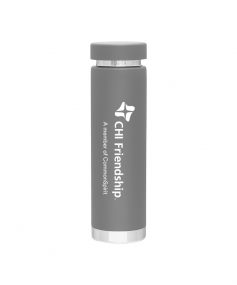 16.9 oz. double wall 18/8 stainless steel thermal bottle with copper vacuum insulation, threaded insulated stainless steel lid, high polish rim and base, and powder coated finish. Hand wash recommended; Do not microwave. Dimensions: 9 3/8 H x 2 5/8".