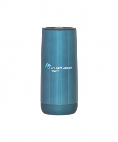 16.9 oz double wall 18/8 stainless steel tumbler with vacuum insulation, push-on lid, matching magnetic swivel closure, and rubberized base. Individual gift box. Hand wash recommended. Do not microwave. Complies with FDA, Prop 65. 7.125" H x 3.125" W