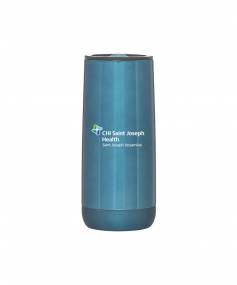 16.9 oz double wall 18/8 stainless steel tumbler with vacuum insulation, push-on lid, matching magnetic swivel closure, and rubberized base. Individual gift box. Hand wash recommended. Do not microwave. Complies with FDA, Prop 65. 7.125" H x 3.125" W